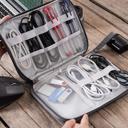 Удобный органайзер в который легко поместится необходимые вещи как флешки, usb кабели, ручки телефон и многое другое. Все будет под рукой и главное – не потеряется