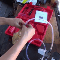 Нужно только прикрутить наконечник шланга к отверстию с тормозной жидкостью, второй конец к насосу и начать скачать старую жидкость