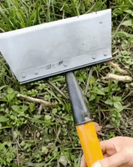 Прочное сварочное соединение, эргономичное отверстие и гвоздяная планка значительно облегчают установку деревянной ручки. В дальнейшем они надежно ее удерживают