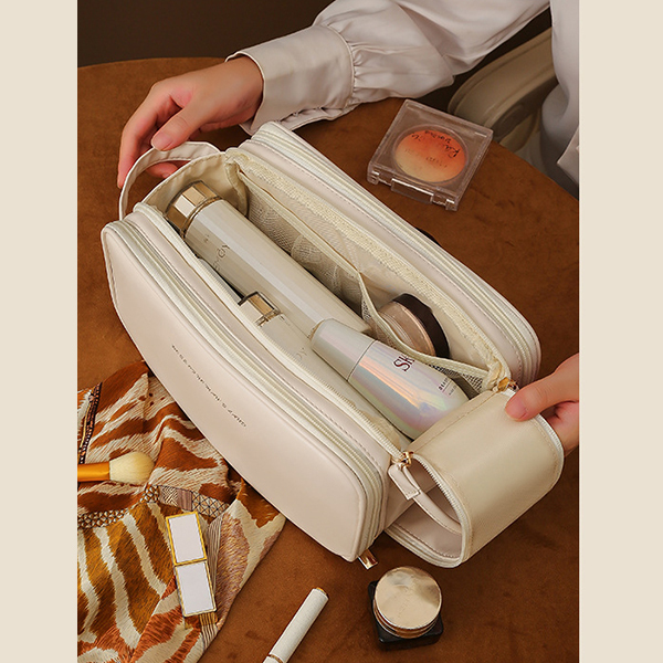 Несмотря на компактный размер, изделие вместит необходимые косметические средства, включая большие флаконы. Это идеальный выбор как для путешествий, так и для повседневного использования дома.
