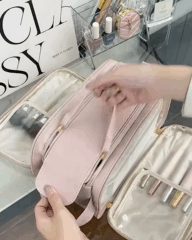 Широкая ручка позволяет удобно переносить косметичку, а застежки-молнии и резинки внутри отделений обеспечивают быстрый и удобный доступ к содержимому.