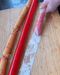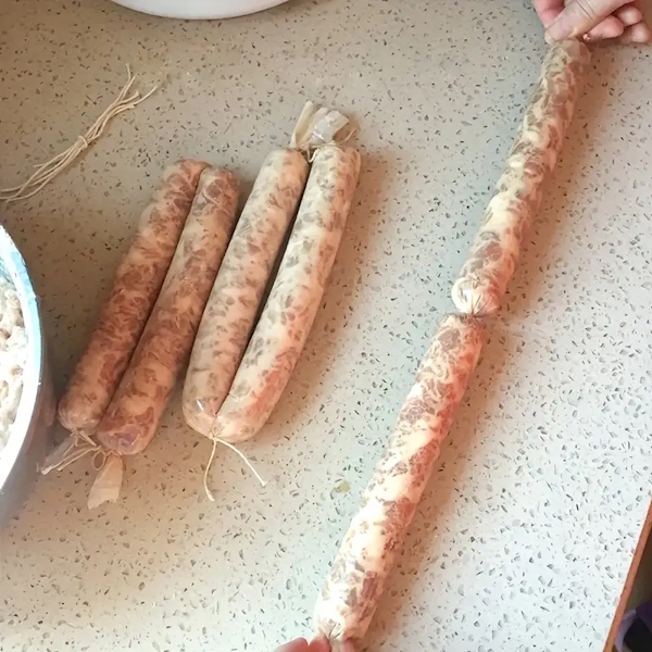 Пищевую оболочку можно без труда наполнить мясным или рыбным фаршем, а затем с помощью ниток сформировать колбаски или сосиски нужной длины