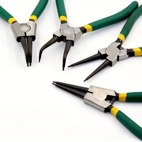 Набор инструментов предназначен для монтажа и демонтажа стопорных колец, которые фиксируют детали на валах или в отверстиях. В отличие от отверток, щипцы позволяют снять крепеж, не повредив вал и соседние детали. Незаменимы при ремонте и обслуживании авто, промышленного оборудования, сельхозтехники и т.д.