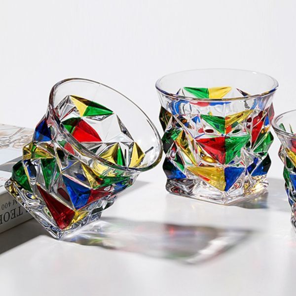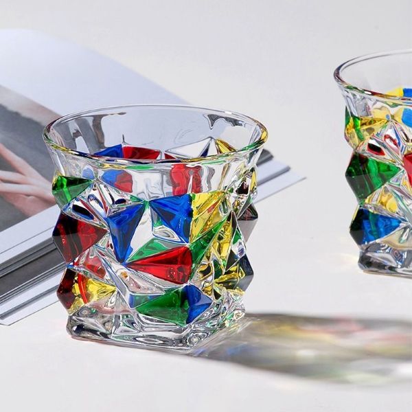Эти стаканы имеют разноцветную текстурированную поверхность, что придает им объемный привлекательный вид. Такая посуда станет украшением любого застолья.