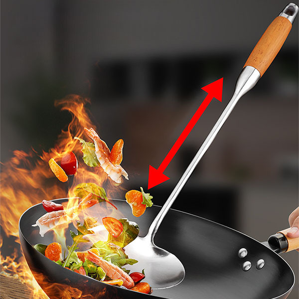 Изогнутая рабочая часть идеально повторяет контуры WOK-сковороды. Это позволяет равномерно перемешивать ингредиенты, контролируя процесс готовки