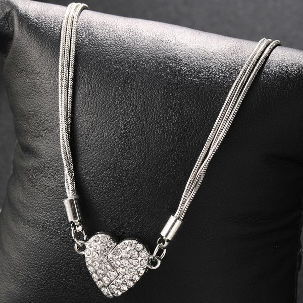 Кулон сердце со сверкающими стразами, надежно фиксируется на шее с помощью магнитной застежки