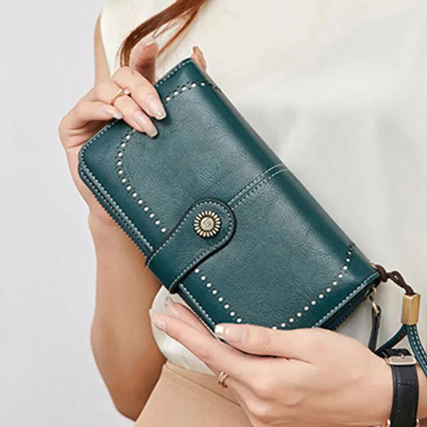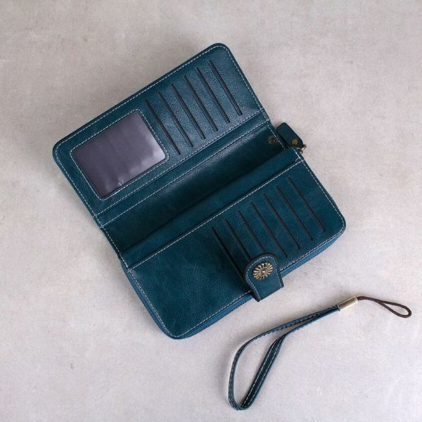 Качественная экокожа разных цветов, стильная ручка и необычная массивная застежка, делает этот кошелек идеальным подарком для женщины любого возраста