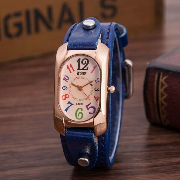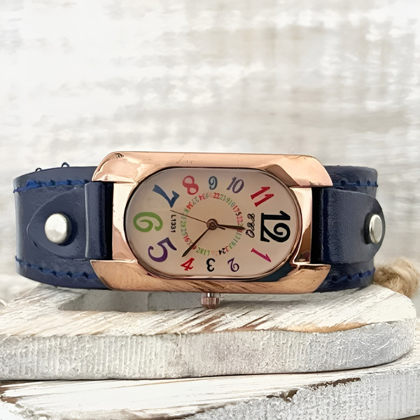 Разноцветные крупные цифры на циферблате часов делают его более ярким и заметным. Благодаря такому дизайну вы сможете легче разглядеть время, даже при плохом освещении