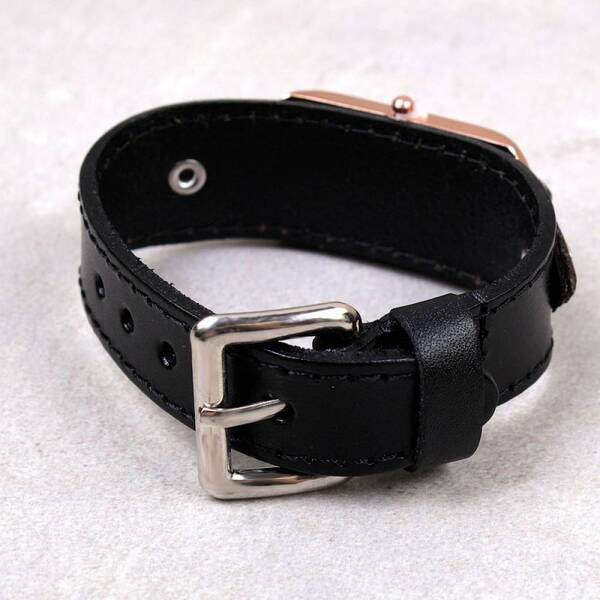 Ремешок часов изготовлен из мягкой и приятной на ощупь искусственной кожи. Он имеет металлическую пряжку, которая позволяет настроить нужный вам размер