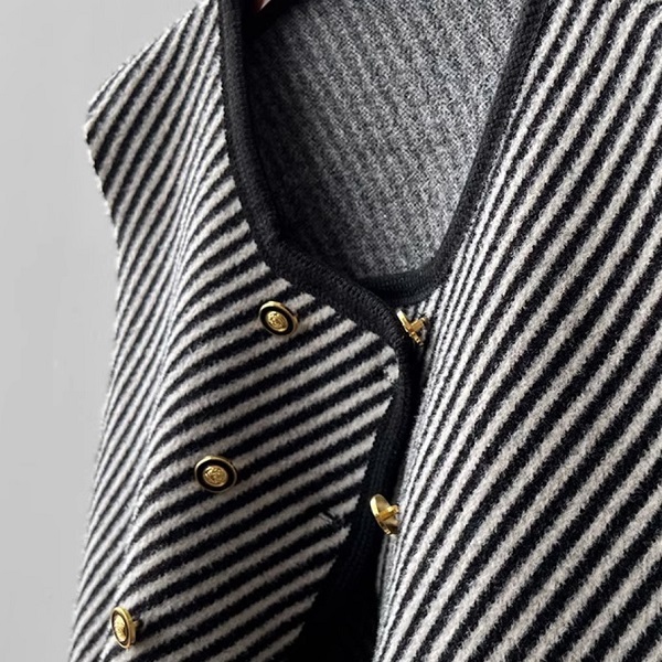 Изделие создано с декоративными пуговицами, которые позволяют не только застегнуть жилет, но и становятся роскошным украшением в стиле ретро