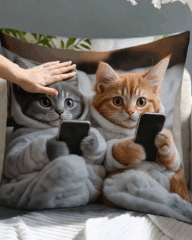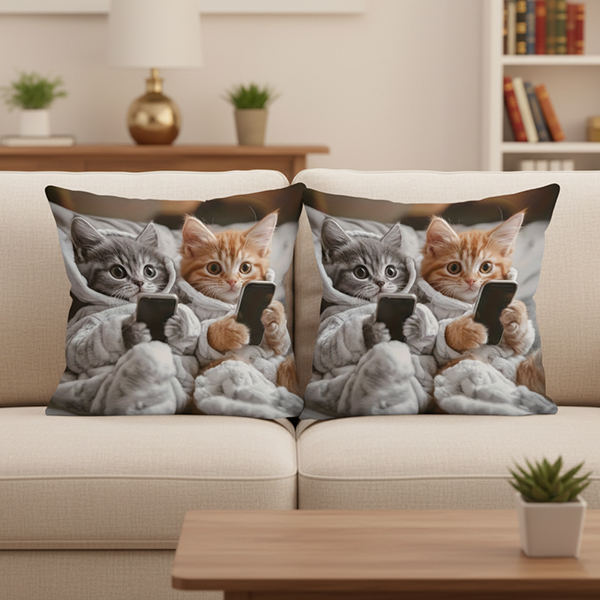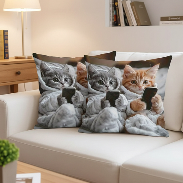 Две наволочки с забавными котиками, которые держат телефоны - стильный и позитивный акцент для дома. Они создают теплую атмосферу и добавляют уюта любой комнате