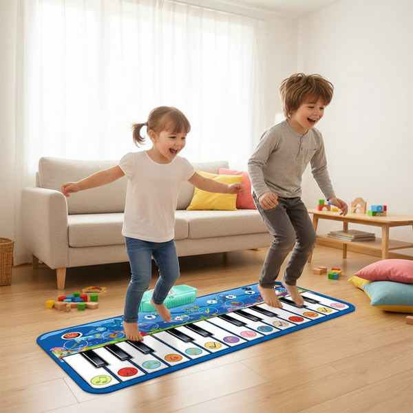 Благодаря размеру 148 × 40 см ребенок имеет достаточно пространства, чтобы прыгать, танцевать и нажимать клавиши руками и ножками. Кроме того, изделие изготовлено из нетоксичного полипропилена