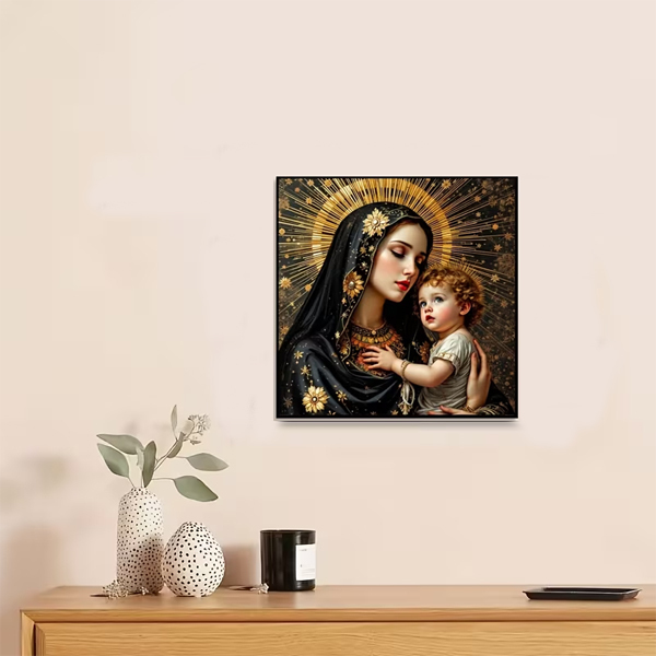 Приобретя этот набор, вы сможете создать не просто картину, а настоящий оберег для дома. Изображение девы Марии с малышом Иисусом символизирует веру, надежду, благословение и материнскую любовь, создаст атмосферу уюта, духовности и гармонии, станет украшением интерьера или дополнением домашнего религиозного уголка