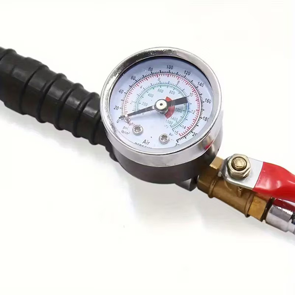 Интегрированный манометр обеспечивает четкое отображение давления. Это предотвращает чрезмерное или недостаточное накачивание шин, обеспечивая лучшее сцепление с дорогой и равномерный износ покрышек
