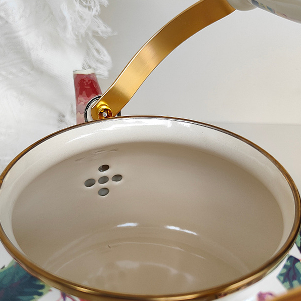 В комплекте предусмотрено металлическое ситечко, которое позволяет удобно заваривать листовой чай или травы прямо в чайнике. Оно хорошо удерживает чаинки и легко очищается после использования