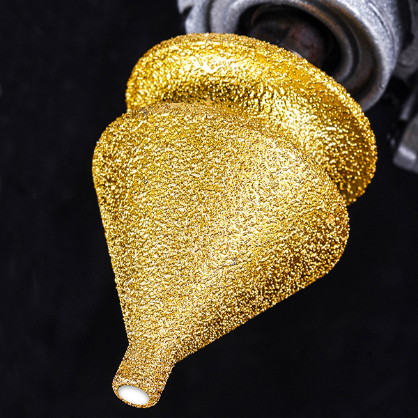 Инструмент имеет многослойное гальваническое покрытие, которое надежно защищает его от коррозии, а также алмазное напыление, гарантирующее качественное сверление и шлифование без трещин и сколов. Алмазное зерно быстро снимает материал и удаляет стружку и пыль из отверстия. Это уменьшает сопротивление во время работы и помогает избежать перегрева фрезы