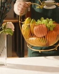 Фруктовница изготовлена из нержавеющей стали, что обеспечивает ее прочность и устойчивость к коррозии. Изделие золотистого цвета дополнит любой интерьер