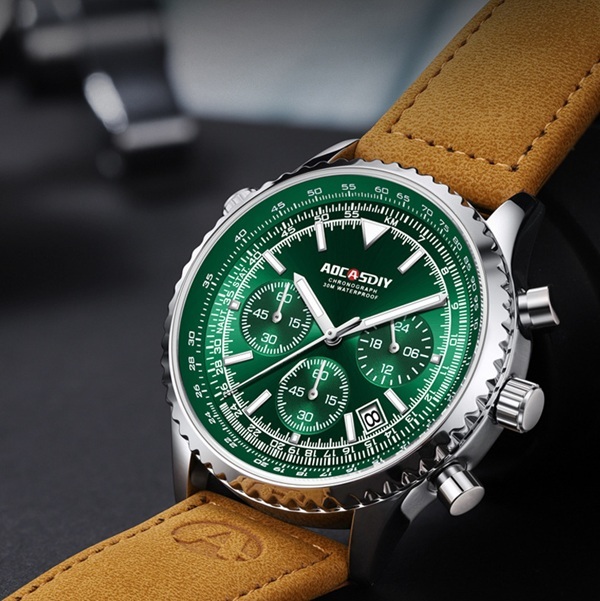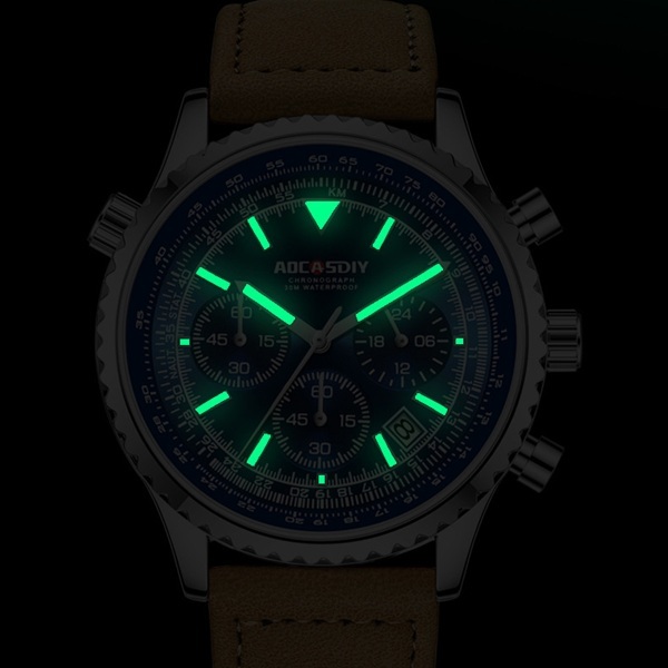 Стрелки и отметки часов светятся в темноте, позволяя легко считывать время даже ночью или при слабом освещении - практичное решение для активных мужчин