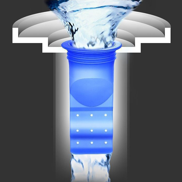Завдяки пружній ребристій основі клапан щільно прилягає до стінок стічної труби й не пропускає ні рідини, ні неприємні запахи, що часто виникають у каналізаційних системах