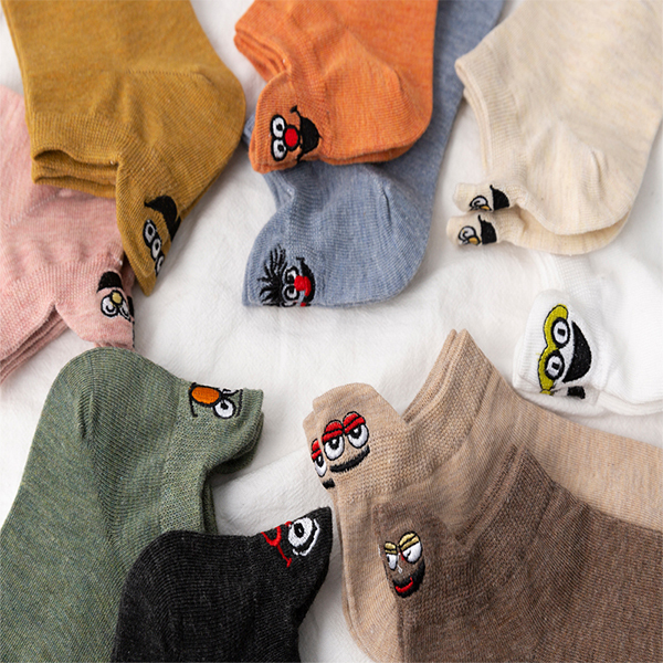 Усі 10 пар шкарпеток мають різний колір та кумедні емодзі над п'ятою. Таке дизайнерське рішення захищатиме стопу від натирань