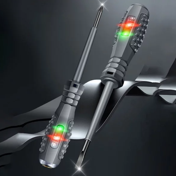 На руків'ї викруток розміщений модуль з двома діодами. Зелене світло показує нуль (заземлення) у точці тестування, а червоний сигналізує про наявність фази
