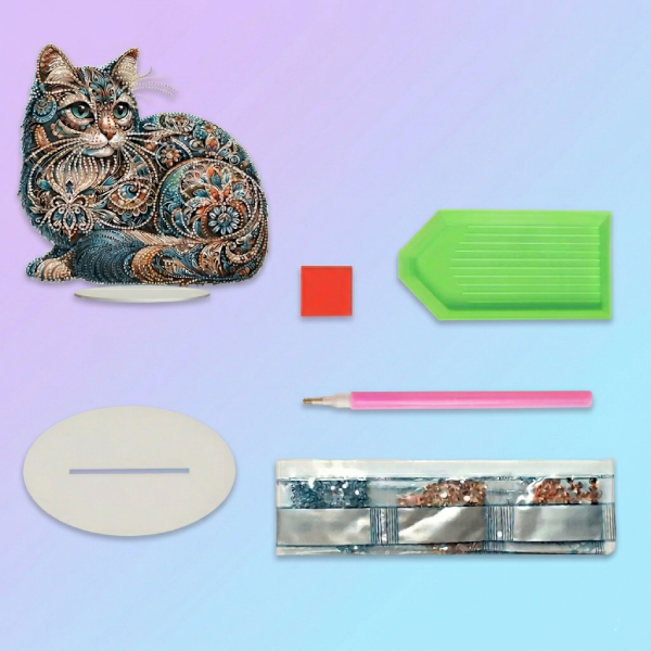 Придбавши набір, ви цікаво проведете час, створюючи діамантову мозаїку з зображенням казкового кота. Після завершення ви отримаєте готовий настільний декор розміром 25 × 23 см, який можна одразу розмістити на полиці, столі чи тумбі без додаткової рамки