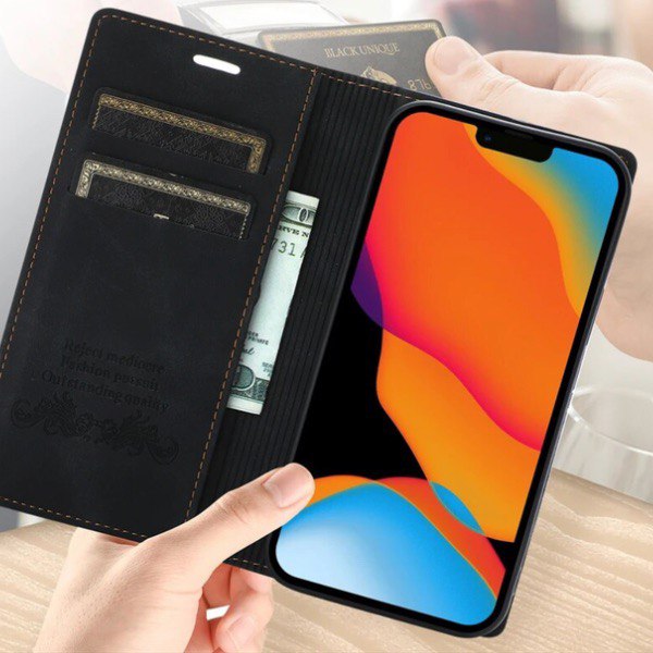 Чохол на телефон у вигляді книги чохол на айфон 14 про має відділення для банківських карт чорний