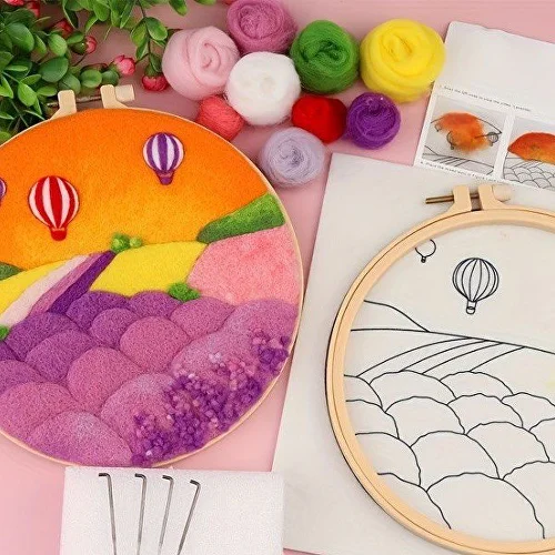 Полотно, пʼяльці, спеціальні голки, різноколірна пряжа, губка та схема — все це входить в набір для створення яскравої картини в техніці сухого валяння. Вам неодмінно сподобається цей вид творчості, адже ви зможете заспокоїтись і відкинути всі думки