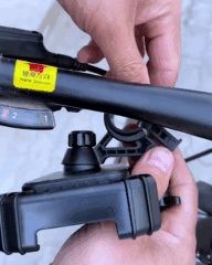 Цей тримач легко фіксується за допомогою кріплення із затискачем. До того ж він має кнопку блокування, тому телефон надійно утримується, навіть під час екстремальної їзди