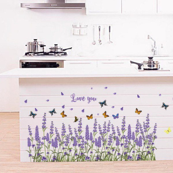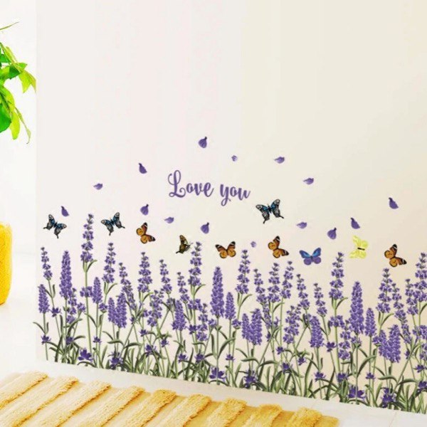 Настінна наліпка — це чудовий спосіб швидко оживити інтер'єр й додати яскравих барв у ваш простір. Композиція з кущів лаванди, метеликів та напису «Love you» створить особливу атмосферу затишку
