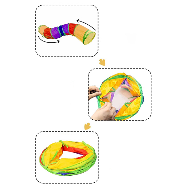 Тунель можна використовувати не тільки в будинку, але й на вулиці, в саду або на дачі. Він легко складається та переноситься з місця на місце