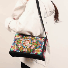 На передній та бічних сторонах сумка оздоблена яскравою вишивкою в етнічному стилі, що надає їй ефектного вигляду та робить акцентним елементом у повсякденному образі
