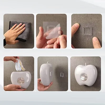 Диспенсер фіксується за допомогою самоклейної пластини. Це дозволяє з легкістю встановлювати його на будь-якій гладкій поверхні. Наприклад, керамічній плитці, склі, холодильнику чи корпусі кухонної шафи
