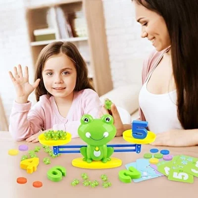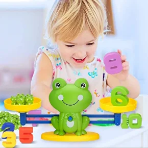 Ваги у вигляді кумедної жабки — оригінальний спосіб познайомити дитину з математичним рахунком. Вивчення цифр у ігровій формі заохочуватиме малюка до занять