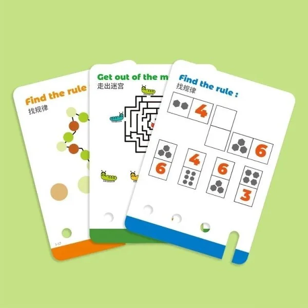 У наборі 40 двосторонніх карток на яких розміщено 80 цікавих завдань. Вони містять пошук чисел, обчислення сум та виконання інших логічних викликів. Ці картки допомагають розвивати математичне мислення та навички розв'язання задач у захопливій ігровій формі