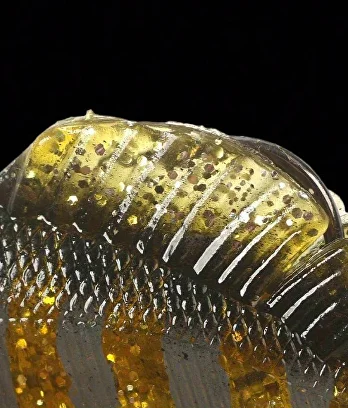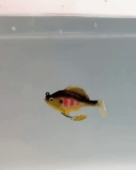 Натуральні відтінки з блискітками імітують природний колір луски, а рухомий хвіст додає вібрацій при рівномірній проводці. Виблискування золотистої пелюстки додатково привертає увагу риби