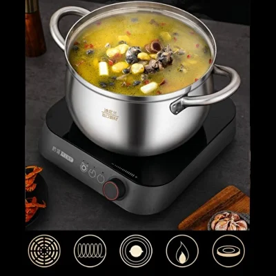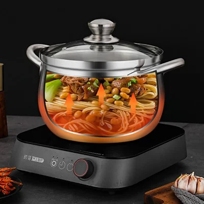 Багатошарове дно каструлі забезпечує високу теплопровідність, сприяючи швидкому та рівномірному нагріванню, що значно скорочує час приготування страв