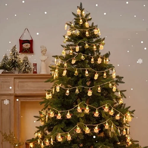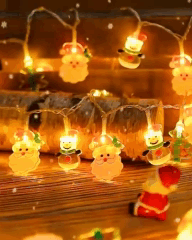 Новорічна гірлянда з фігурками Санта Клауса, сніговика та ялинки, що додає особливого шарму та оригінальності святковому оформленню. Вона не лише прикрашає простір, але й підіймає настрій, вносячи відчуття радості й казковості в оселю