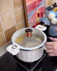 Герметична кришка надійно фіксується, утворюючи мікротиск усередині, що прискорює процес приготування. Гаряча пара виходить через клапан, що гарантує додаткову безпеку під час користування