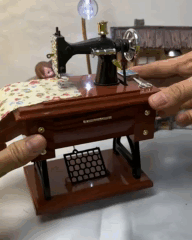 Музична скринька у формі вінтажної швейної машинки вражає своєю деталізацією. Вона додасть нотку вишуканості у будь-який інтер'єр та стане оригінальним декором для оселі