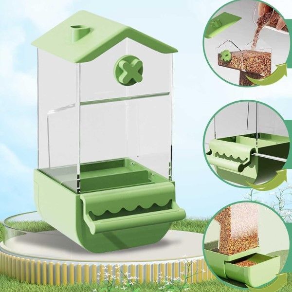 Годівниця має прозору конструкцію, що дозволяє контролювати кількість корму всередині та вчасно його досипати, щоб ваша пташка завжди мала їжу