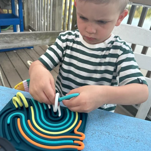 Викладаючи кольорові смужки на двосторонній силіконовій дошці, дитина тренує моторно-зорову координацію, дрібну моторику рук, терплячість, а також розвиває уяву і творче мислення