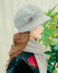 В'язана частина шапки та шарф виготовлені з акрилових ниток. Для декоративного ефекту шапка прикрашена бантиком збоку та каркасним козирком на всю окружність голови