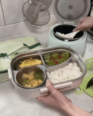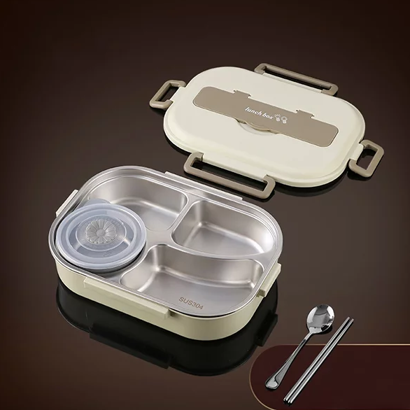 Ланч-бокс має супницю та кілька відділень для різних страв, що дозволяє зберегти їхню свіжість та смак без змішування. Комплект включає ложку та палички для їжі, які зручно зберігати в окремому відсіку на кришці