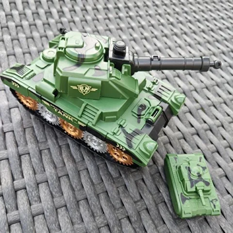 Іграшка має рухому башту і гусениці, а всередині корпусу знаходиться ще один маленький танк. Така розвага неодмінно зацікавить маленьких фанатів військової техніки