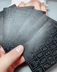 Трафарети легко наклеюються на нігті, міцно тримаються, не деформуються під час нанесення пудри та швидко знімаються, не пошкоджуючи покриття. Завдяки якісному клейовому шару вони щільно прилягають до поверхні нігтів, дозволяючи отримати чіткі та рівні контури