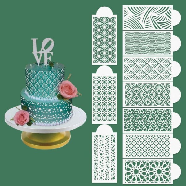 За допомогою цих шаблонів можна легко нанести візерунки на поверхню торта, створюючи декоративні елементи. Крім того, вони ідеально підходять для формування текстурного покриття, просто накладаючи крем, шоколад чи інші кондитерські маси