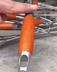 Пристосування має дерев'яну ручку довжиною 14 см. Завдяки ергономічній формі вона зручно лежить в руці та не ковзає, що гарантує безпеку під час готування. Ручка не нагрівається, навіть якщо ви довго тримаєте м'ясо над вогнем