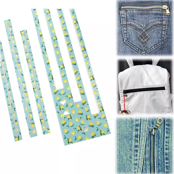 Цей шаблон призначений для виготовлення кишень із блискавками довжиною 18, 20 та 23 см. Він дозволяє швидко та точно зробити розмітку для розташування застібки без додаткових вимірювань