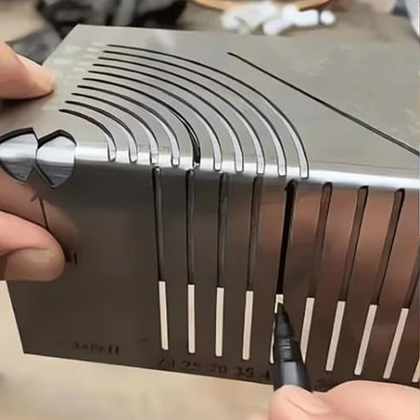 За допомогою шаблона ви зможете зробити розмітку на поверхні металевого профіля, щоб зігнути його під прямим та заокругленим кутом. Більше ніяких складних вимірювань — ідеальні пропорції та висока точність у кожному проєкті